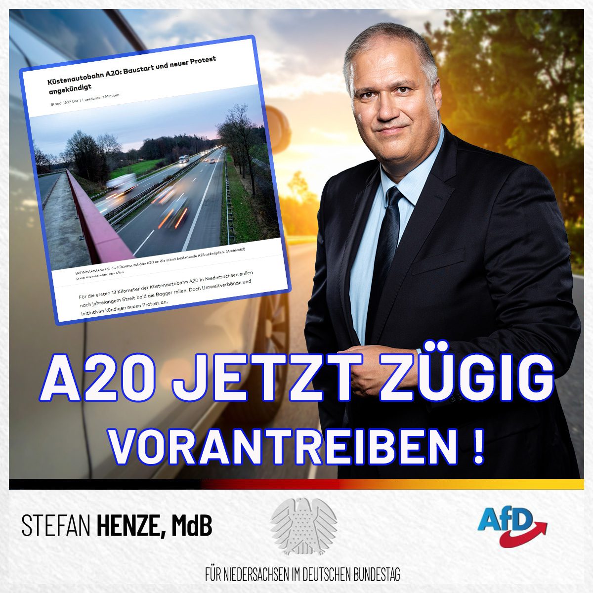 Der geplante Baustart ist ein längst überfälliger Schritt. Die A20 ist enorm wichtig für die wirtschaftliche Entwicklung Norddeutschlands und die Anbindung unserer Seehäfen. Bund und Länder müssen darum weitere Verzögerungen verhindern und das Projekt zügig zu Ende bringen!