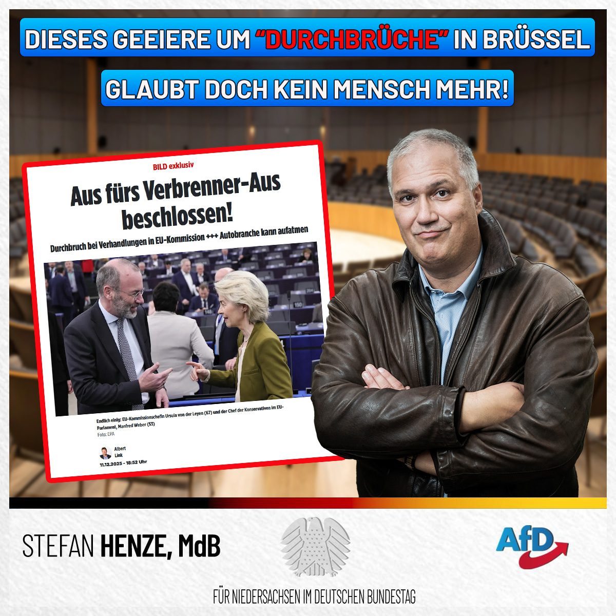 Von der Leyen und Weber basteltvmal wieder halbherzig an der 90%-CO2-Lüge rum, statt das Technologieverbot endgültig zu kippen.