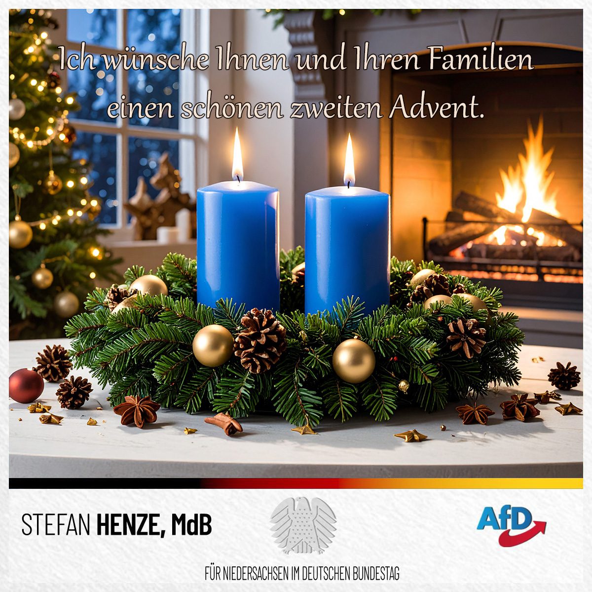 Ein weiteres Licht, das uns wärmt. Zum zweiten Advent wünsche ich Ihnen und Ihren Familien alles Gute. Genießen Sie die gemeinsame Zeit und die Gemütlichkeit!